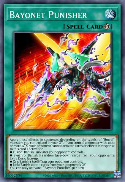 Apply these effects, in sequence, depending on the type(s) of “Borrel” monsters you control and in your GY. If you control a monster with 3000 or more ATK, your opponent cannot activate cards or effects in response to this card’s activation.