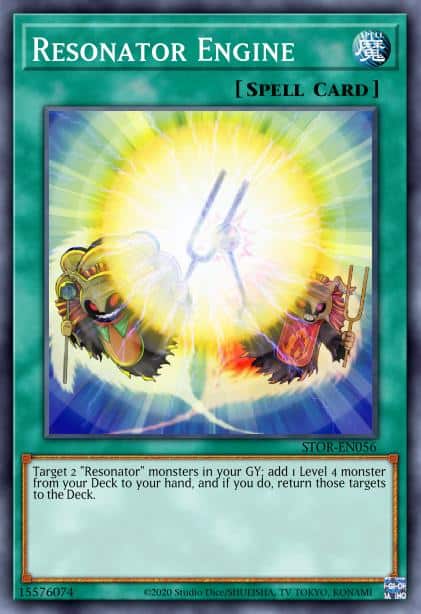 Target 2 “Resonator” monsters in your Graveyard; add 1 Level 4 monster from your Deck to your hand, and if you do, return those targets to the Deck.